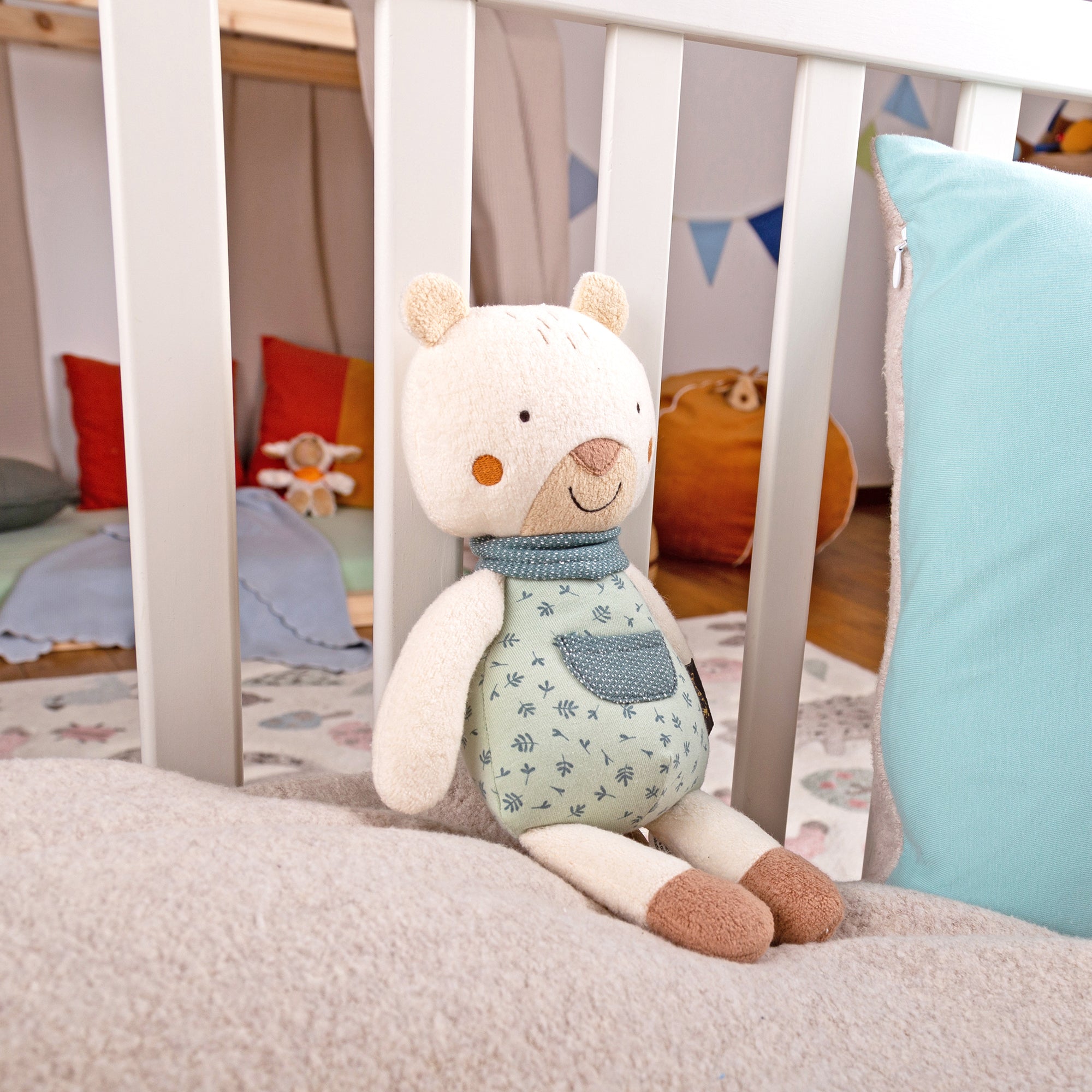 The music box can be extracted by adult hands, armed with a safety pin, in order to wash the toy or swap out the lullaby. These musical toys make gorgeous gifts for newborns and help young families build wholesome rituals.